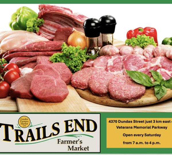 FARM FRESH FAMILY MEAT at Trails End Farmers’ Market! Freshest quality ingredients at Trails End Farmers’ Market! SPECIALS THIS SATURDAY, APRIL 11, 2026 include… JUICY Ontario Pork Chops –10 for