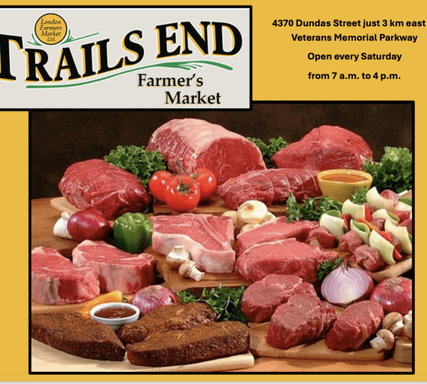 FARM FRESH FAMILY MEAT at Trails End Farmers’ Market! Freshest quality ingredients at Trails End Farmers’ Market! SPECIALS THIS SATURDAY, November 8, 2025 include… JUICY Ontario Pork Chops –10 for
