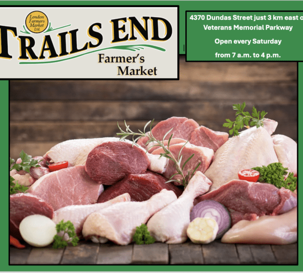 FARM FRESH FAMILY MEAT at Trails End Farmers’ Market! Freshest quality ingredients at Trails End Farmers’ Market! SPECIALS THIS SATURDAY, November 22, 2025 include… JUICY Ontario Pork Chops –10 for