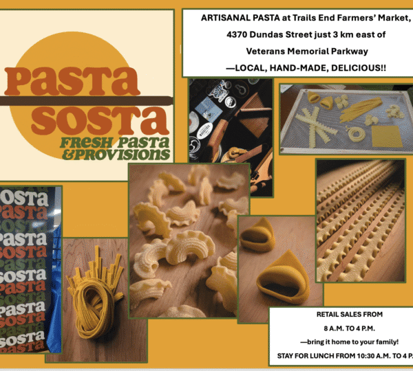 Real People. Real Pasta. The really hard way. Pasta Sosta is a small, artisanal pasta shop currently operating minutes outside of London, Ontario at the Trails End Farmers Market. They